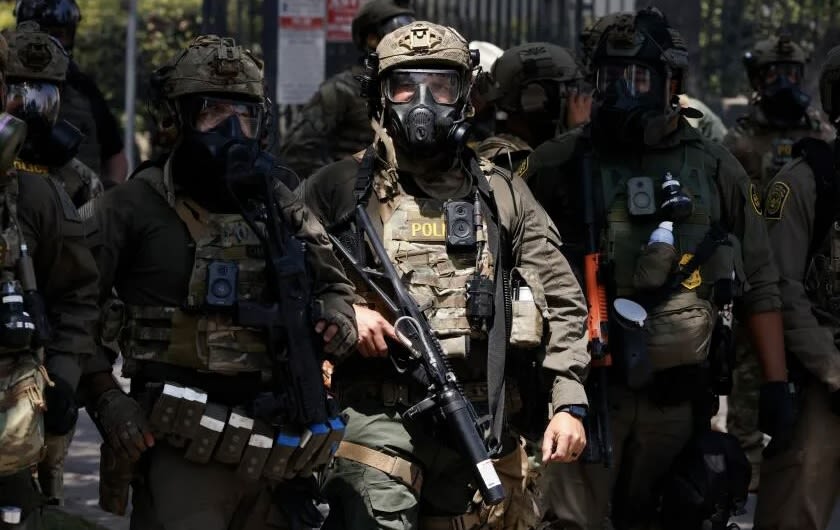 The raids come as President Trump — speaking at a rare gathering of senior military leaders at Quantico — advocated for a muscular approach to domestic threats and suggested large U.S. cities could be used as military “training grounds.” His remarks, which have drawn bipartisan alarm, followed the administration’s recent deployment of Border Patrol, ICE and other federal officers to major cities. Officials in Washington and at the state level have said the Department of Homeland Security has sought military personnel to protect federal facilities and agents in some locations.